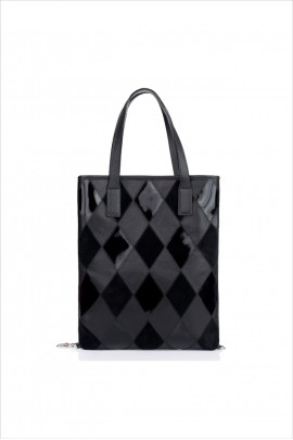 Geantă RENA neagră din piele naturală cu romburi